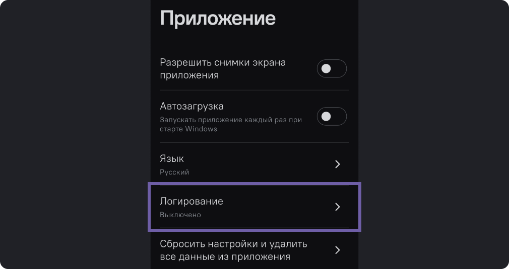 Это функция сохранения логов. По умолчанию она отключена, но вы можете включить ее, чтобы в случае неисправности работы приложения отправить файл с логами в техническую поддержку.