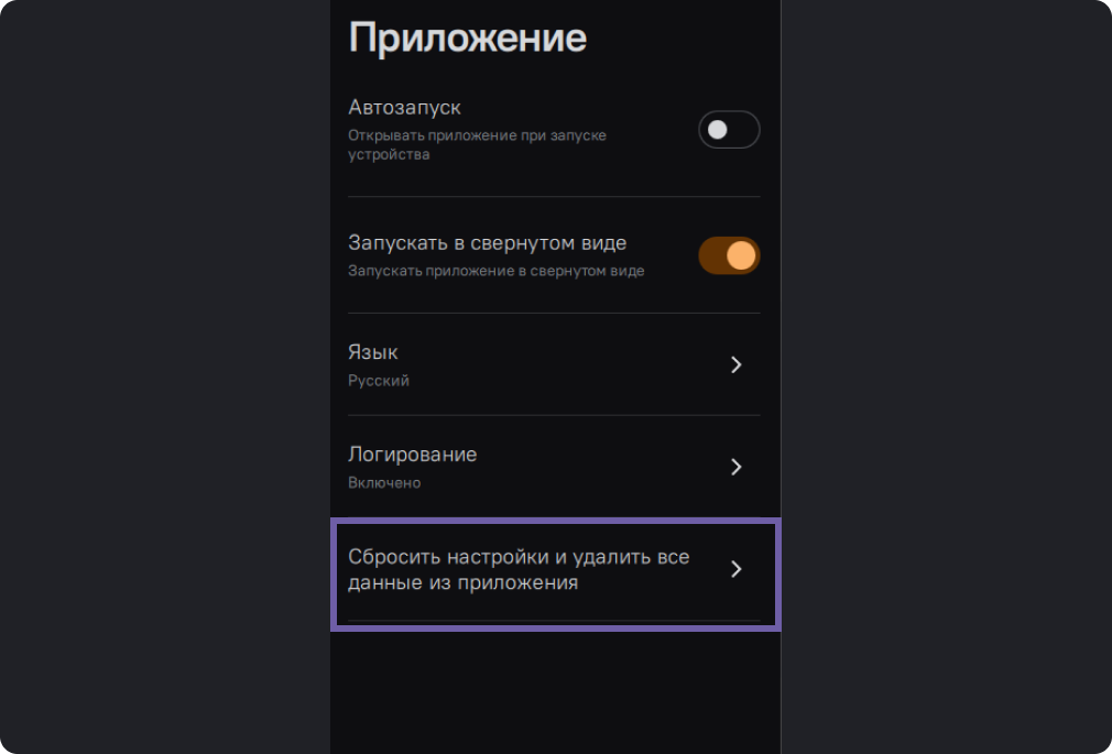 На следующем экране выберете “Сбросить настройки и удалить все данные из приложения”.