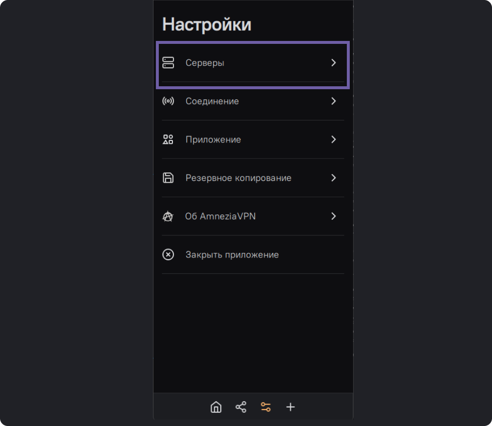 Далее перейдите в раздел “Серверы”.