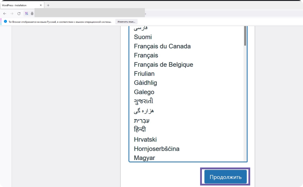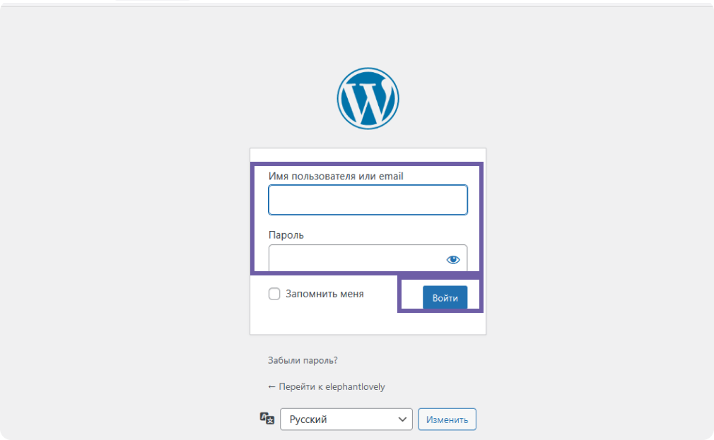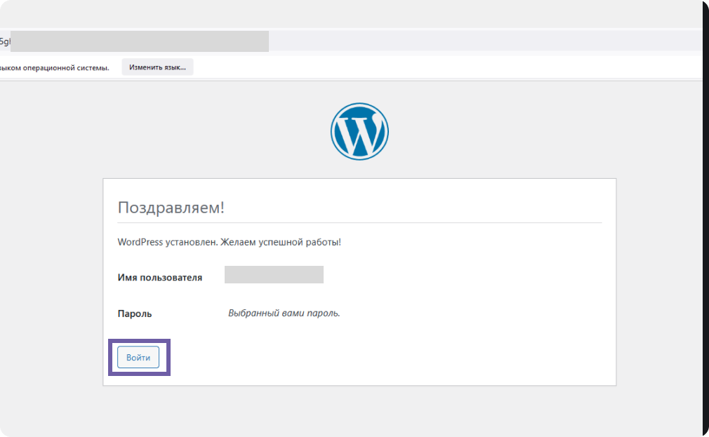 Вы установили WordPress для создания сайта в сети Tor. Далее нажмите “Войти”.