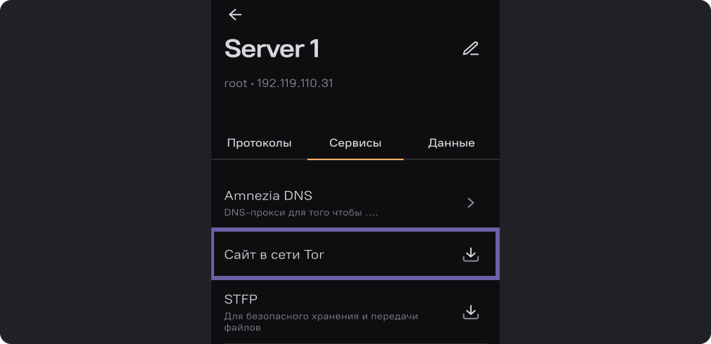 Во вкладке "Сервисы" выберете “Сайт в сети Tor”.