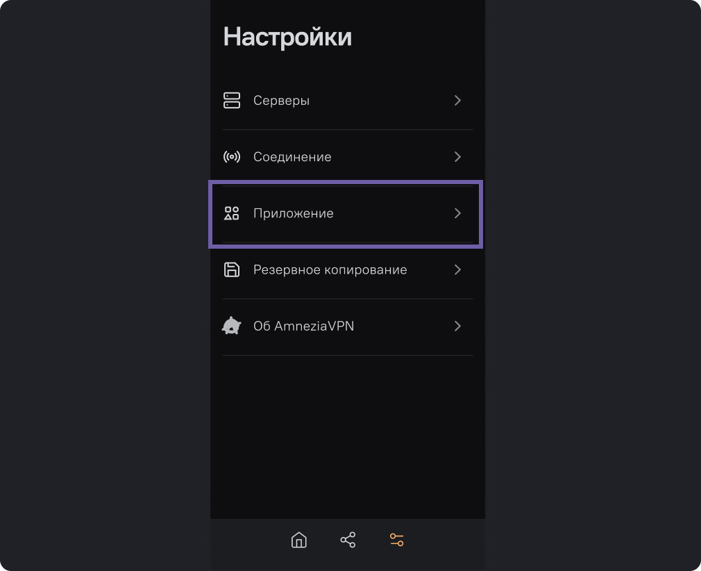 Далее перейдите в раздел настроек “Приложение”.