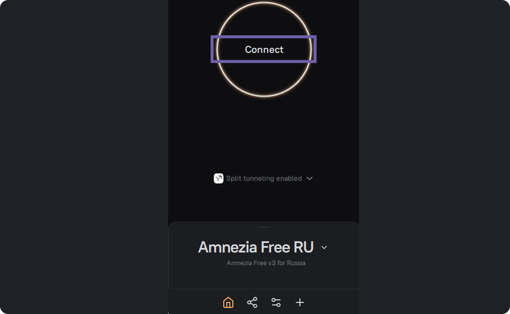 На главном экране нажмите на центральную кнопку "Подключиться"